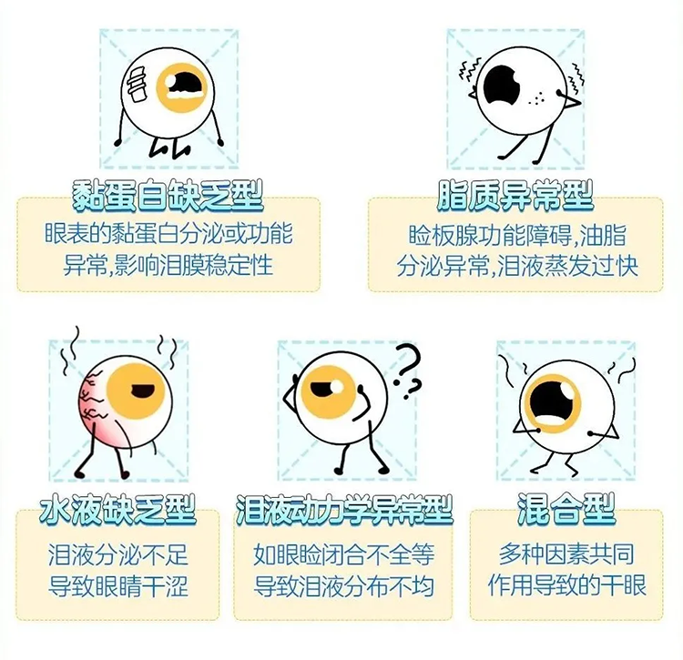 5.混合型干眼:同時存在兩種或兩種以上類型的干眼,也是臨床中最常見的類型。