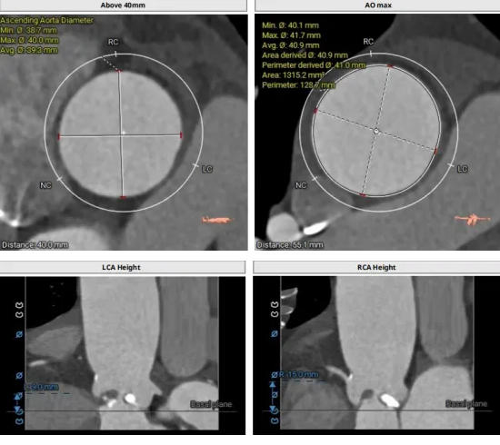 76歲女患者,完善檢查后診斷為主動(dòng)脈瓣重度狹窄,心力衰竭,合并高血壓,房顫,肺栓塞。針對(duì)患者主動(dòng)脈瓣狹窄的病變考慮有心功能進(jìn)一步惡化風(fēng)險(xiǎn),心內(nèi)科團(tuán)隊(duì)與心外科、麻醉科、超聲科、放射科、介入科等多學(xué)科對(duì)病情反復(fù)研討和充分評(píng)估后,最終選擇為該患者實(shí)施TAVR手術(shù)。