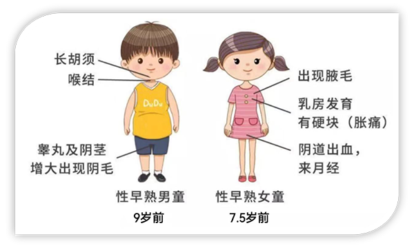 女孩7.5周歲之前出現(xiàn)乳房觸痛、乳頭突出或者外觀(guān)隆起的乳房發(fā)育方面的反應(yīng),或者陰部開(kāi)始出現(xiàn)陰毛,陰道會(huì)流出少量分泌物,就有可能為性早熟。