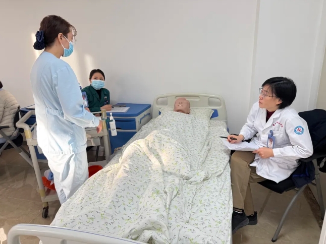 本次操作考核項(xiàng)目涉及導(dǎo)尿術(shù)、經(jīng)鼻/口腔吸痰術(shù)、胃腸減壓術(shù)、心肺復(fù)蘇術(shù),均采取當(dāng)場抽簽方式?jīng)Q定。為了確保本次考核順利,各科室嚴(yán)格培訓(xùn),護(hù)理人員積極準(zhǔn)備,在護(hù)理部組織動員與統(tǒng)籌規(guī)劃下,于12月11-13日技能操作考核在臨床技能中心有序開展,評委們嚴(yán)格對照評分標(biāo)準(zhǔn)細(xì)致考核,從操作技能規(guī)范與熟練度,到與患者(模擬人)溝通交流及人文關(guān)懷等多方面對每一位護(hù)士進(jìn)行綜合評分。