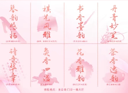 古琴演奏與體驗(yàn)、圍棋、象棋對(duì)弈與交流、書法創(chuàng)作與展示、詩歌繪畫創(chuàng)作與欣賞、簪花藝術(shù)、茶藝表演與品鑒。