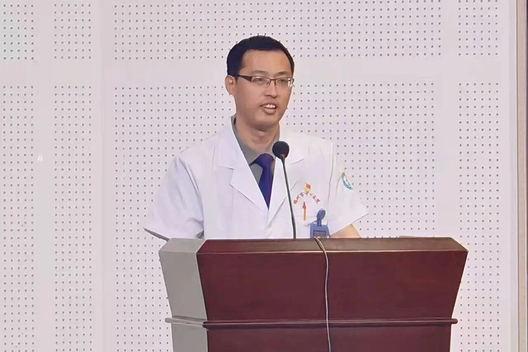 隨后,優(yōu)秀指導(dǎo)教師代表姜帥主任上臺(tái)發(fā)言。他結(jié)合自身培訓(xùn)經(jīng)歷,分享了在帶教老師指導(dǎo)下的成長(zhǎng)與感悟,感謝老師們?cè)谂R床實(shí)踐中手把手的教學(xué)、在職業(yè)道路上的悉心指引,以及在生活中的關(guān)懷幫助,并向全體帶教老師獻(xiàn)上誠(chéng)摯的祝福。